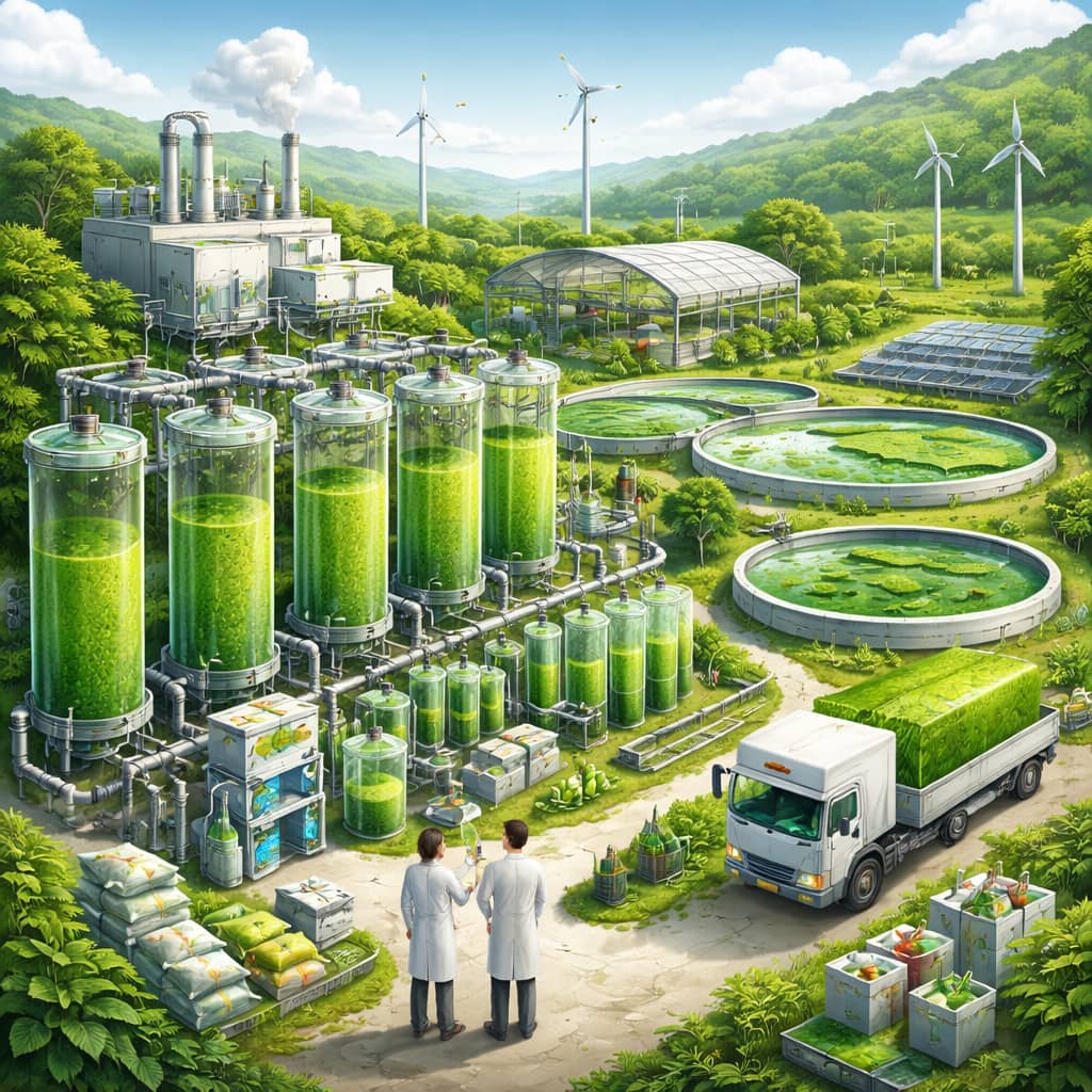 - Integration of open ponds, photobioreactors, and fermentation systems
